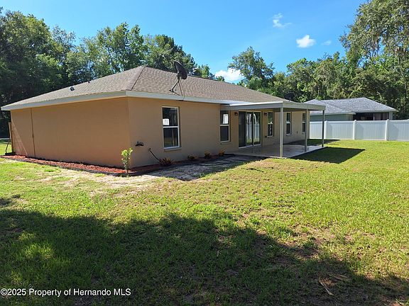3BR/2BA/Office Den/2 GA 1/2 Acre Covered Rear Patio Deck 15125 Carolina Dove Rd, Brooksville, FL 34614-1623, United States Come See this Adorable family home in the desirable Royal Highlands neighborhood Enjoy your gorgeous and spacious fully remodeled open floor plan 3BR plus Office/Den 2BA 2 Car garage home tastefully done with a eat in breakfast nook, breakfast bar and indoor laundry room. Office could be 4th Bedroom. Home has large open floor plan with high taised ceilings offering views from kitchen, living room, bedrooms and office / den combo. This home offers privacy & no build conservation lots across street on your 1/2 acre lot. Access to suncoast trail is less than 1 minute walk from home, where you can jog, walk or bike on this 34 mile trail from your home. Fully remodeled interior with new upgraded 22 mil Luxury Vinyl Plank Flooring & custom 5 1/4'' colonial baseboards throughout entire home. Custom ceramic plank tile installed in front entrance foyer as you enter home and also installed in both bathrooms & laundry room Office/Den has double full glass french doors and single full glass door and 3 bay windows allowing for plenty of light and views througout your home. Home has large outdoor covered porch overlooking large backyard with new cool deck finish intalled that's great for enjoying a peaceful cup of morning coffee or outdoor grilling or enjoying cool evening breezrs. Primary Bedroom is 20x18 giving you plenty of room for larger furniture, a sitting area or additional office and MBR bedroom also boasts a large walk-in closet. Bedrooms 2 and 3 are also larger than average with large oversize closets. Enjoy your amazingly large Kitchen that has custom raised ceilings & led lights that highlight your upgraded granite counters. Custom Chef's dream kitchen with 42'' solid wood shaker cabinets with soft close draws offering huge amounts of storage space There is a eat in kitchen sitting area and a kitchen pantry closet and 2 linen closets outside guest bathroom. Bathrooms have custom solid wood shaker cabinets, new fixtures and mirrors MBR Shower high end remodel with new fixtures, soft close custom shaker cabinets, granite, walk in shower and large soaking tub. MBR Vanity has his & her sinks with a large custom mirror. Home plumbing connections all installed with new valves and stainless steel water lines. Home has upgraded granite counters and fixtures in kitchen and both bathrooms. New knockdown texture and fresh paint on all walls and ceilings New Stainless Steel appliances with SS microwave mounted above stove and a full size Stainless Steel XL refrigerator to store your home cooked meals. New fans & lighting fixtures throughout your home New window screens installed on all windoes NO HOA on .50 mol acres gives you plenty of to spread out, plant a garden, install a pool, build a workshop. Outside, the covered patio opens to a massive backyard—just waiting for your firepit, garden beds, playset, or even that dream pool. Located near US-19 and the Suncoast Parkway, adventure is never far away. Paddle through 7 Sisters Springs, catch a magical mermaid show at Weeki Wachee, or soak up the sun at Buccaneer Bay. Here, every weekend feels like a staycation. Come see it for yourself and start your next chapter today. Weeki Wachee Water Park, Publix Shopping Center & Restaurants. Weeki Wachee Middle School & High schools 5-10 minutes away Bedroom 2 Dimensions - 14x12 Bedroom 3 Dimensions - 14x12