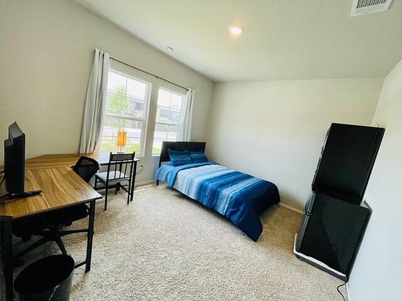 Guest bedroom in a 4b/3b brand new house, 13 minutes from Tesla Giga Austin. The bathroom is shared (with one person at maximum). The room is quiet and serene. You have access to a large kitchen equipped with brand new whirlpool refrigerator, a spacious living room with a 4K 82 inch TV, and brand new washer & dryer. Free street parking is also available. Brand new cul-de-sac 2-story located in the east Austin Forest Bluff community. Close to FM 969 and SH 130 highways as well as IS 45. 15 minutes to Downtown. 13 minutes to the planned Tesla factory and 4 minutes to a big grocery store. Great view. Equipped with ADT smart home system that can control the A/C, and the front door lock. Two large water heater tanks ensure your family never run out of hot water at any time. Vinyl hard floor in living room, kitchen and all bathrooms. Carpet everywhere else. Large laundry room. Tons of storage. Granite countertops. All electrical appliances. Open kitchen. Game room/loft on the 2nd floor. Large fenced backyard. No pets are allowed, No smoking. No modification to any features or use purposes. Rent, security deposit and non-refundable application fee for background check due at lease signing. Washer/Dryer all included. Utility shared. Rent for at least 6 months. Students or professionals are preferred. Proof of income is needed. The price is $800 for one person. Short-term rental is negotiable. Available now!! The utility fees (water, electricity, trash, and internet) are shared by tenants.