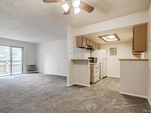 Looking for a move-in ready condo with reserved, covered parking, an in-unit laundry room, large walk-in closet, spacious bathroom, fireplace and deck? Then Unit 201 in the Knollwood Community is your next MUST SEE! This 2 bed, 1 bath condo is located adjacent to Village Green Park and Recreation Center featuring a jungle gym, two tennis courts, a rec center, community pool and huge grass sections for playing ball! The unit is a short walk to King Soopers (1 block away!), Gateway High School, various bus stops, and a mere 1.5 miles to the Florida Light Rail Station, serviced by RTD's H and R lightrail lines. If your commute includes a drive, it's only 4 minutes to hop on I-225 providing easy access to I-25, Parker Road, 6th Ave, Colfax, or I-70! If you're headed to the airport it's a 25 minute drive most of the day and still only 40 minutes during rush hour. When entering the condo you're greeted by a spacious family room and wood-burning fireplace. From there you can head into the dining space and kitchen - which includes all major appliances as well as a ventilation hood for cooking - or you can go out onto your private balcony and enjoy views of the professional managed grounds and Village Green Park. The private balcony also has a large storage closet for sports equipment, holiday decorations, outdoor gear and more! Head back inside and down the hall and you can enter one of four doors. You can enter your laundry room with storage shelves and washer and dryer (included), or just past that into the bathroom which is larger than average for condos of this size. The remaining two doors each lead into a bedroom, one with a large walk-in closet and the other to a large closet with sliding doors. This is a lovely community, and units rarely go on sale, don't miss your opportunity to buy this one because it could be years before another one comes up for sale. Call today for a private showing, all showings require masks be worn and appropriate COVID precautions.