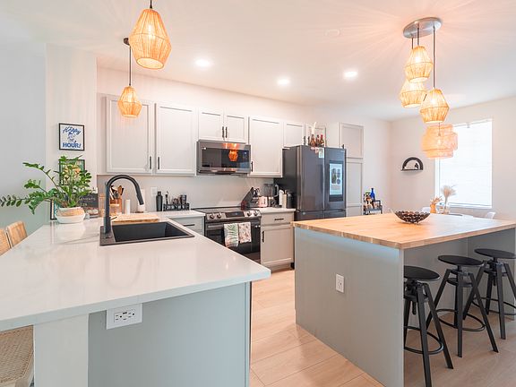 - Open kitchen layout with new countertops, kitchen island, and top-of-the-line appliances