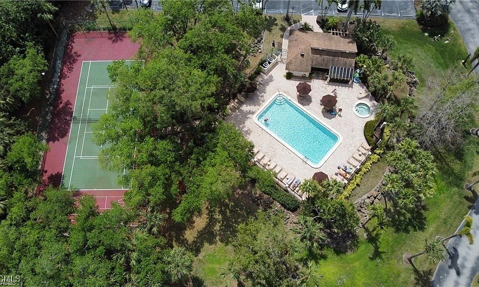 The community offers a swimming pool, a jetted hot tub, a tennis court, and a small marina with Gulf access via the river.