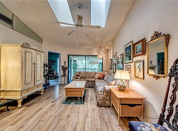 Currently the only active listing in Parkside Condo on the MLS! This is the peaceful oasis you've been searching for. It's centrally located in south Fort Myers, very low hoas and lush landscaping throughout, truly resembling a park-like setting. Perfectly situated across from Lakes Park and in between the beaches and airport. A bonus besides having a large pool, spa, club room and tennis court is the winding creek on the property that is GULF ACCESS!! (The canal leads to Hendry Creek and then to Estero Bay, accessible by skiff or small pontoon) Skiffs can be stored in dirt area by canal. This top floor unit allows abundant natural light to flow in from the two skylights above. The patio offers a nice soothing view of various pines and palms. A/C was replaced in 2009, corean countertop in 2010 and natural laminate flooring replaced in 2011. This well maintained unit would be a great investment opportunity, seasonal getaway or purchase for much less than rent! Schedule a private showing today to experience the tranquility this serene unit offers!