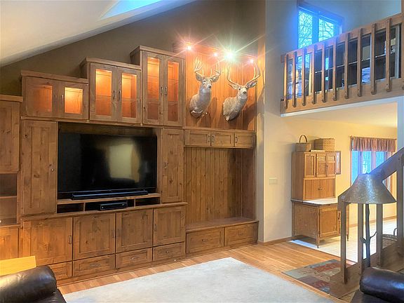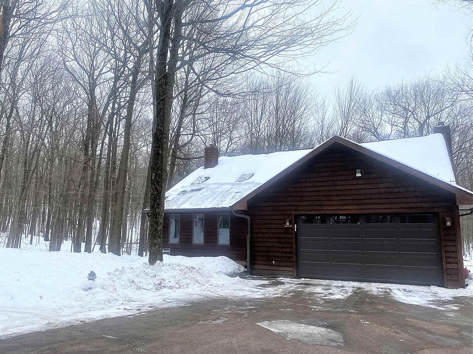 Beautiful 5 acre setting on a totally wooded hardwood hill! Hard to come by 4 bedroom, 3 bath home in Rib Mountain South. Modern rustic style has a large kitchen-dining area with a center island, patio door that walks out to a new deck. The main floor primary bedroom has ample space with 2 large closets and a walk-through master bath. The living room with hardwood flooring and floor to ceiling custom entertainment cabinetry. The 2nd story has 2 bedrooms, 1 bath and loft area. Finished walk-out lower-level has a huge family room with fireplace and wet bar, 1 bedroom and bath. A newer roof and furnace. Conventional septic.