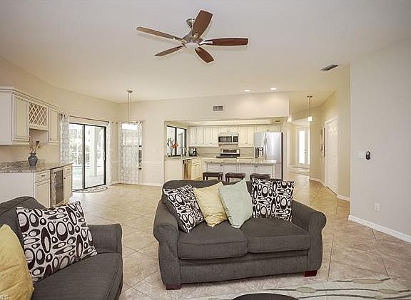 Remodel home with new metal roof, new front entry tile and doors. New kitchen cabinets with soft close feature, granite, entertainment bar, tile throughout, interior and exterior paint, light fixtures, and new plumbing fixtures. New garage door opener with remotes. New water heater. New washer and dryer. New pool heater. Re-screened pool cage. Sprinkler system.