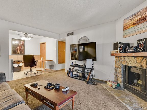 This ground level 2 bedroom, 1 bathroom unit has a private patio, tile flooring, fireplace, and laundry room. Newer hot water heater, refrigerator, dishwasher, and vanity. There's an extra storage closet on the patio and an assigned covered parking space. Village Green Park has a playground, tennis courts, clubhouse and is adjacent to the complex. If you are commuting this is near I-225, public transit, light rail, & shopping. This home is waiting for you, call for a showing today!