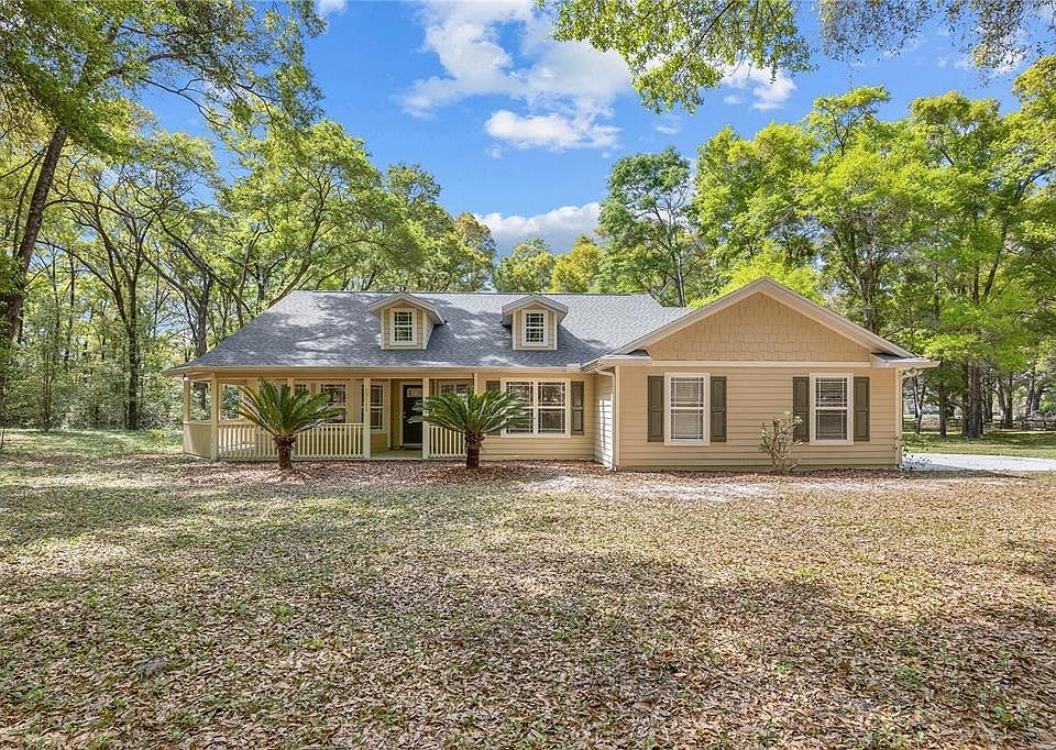 Welcome to your dream oasis! Nestled on a picturesque 5-acre parcel, this enchanting 4-bedroom, 2-bathroom home has undergone a lavish transformation, offering a perfect blend of modern luxury and natural beauty. As you approach, the inviting front porch beckons you to unwind and savor the tranquility of the surroundings. Step inside to discover a haven of elegance, where stunning luxury vinyl flooring and an abundance of windows bathe the interiors in radiant natural light. Indulge your culinary senses in the heart of this home, where a recently renovated kitchen beckons with exquisite craftsmanship and upscale finishes. Adorned with beautiful new cabinets that provide ample storage space and adorned with new sleek quartz countertops, a new farmhouse sink, and brand-new stainless-steel appliances. Whether you're whipping up a quick meal or hosting a gourmet gathering, this meticulously designed kitchen sets the stage for culinary creativity and effortless entertaining. The heart of the home boasts new luxury vinyl flooring and complemented by a brand-new roof overhead, ensuring both style and functionality. Beyond that, a convenient side entry 2-car garage awaits, providing ample space for vehicles and storage. Venture out to the expansive back deck, a picturesque retreat overlooking the sprawling property. Whether you're hosting gatherings or simply basking in the serenity of nature, this space is sure to captivate. Nestled in a highly desirable area, this residence offers unparalleled convenience, with nearby rivers and springs beckoning outdoor enthusiasts. Additionally, essential amenities are within easy reach, including a short 15-minute drive to Publix and a mere 30 minutes to the esteemed University of Florida. Experience the epitome of refined living in this idyllic sanctuary, where every detail exudes charm and sophistication. Your oasis awaits!