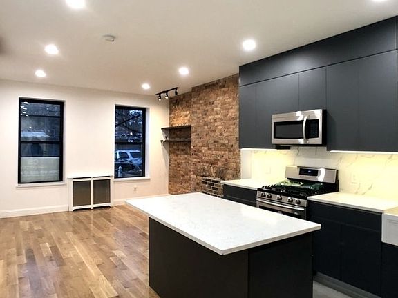 **NO FEE** Welcome home to your beautiful newly gut-renovated renovated 2 bedroom apartment in Crown Heights! This gorgeous apartment is filled with features. This unit includes 2 large bedroom each big enough to fit a queen size bed, A/C unit in each room, LOTS of sunlight, large living space, decorative fireplace, brand new stainless steel appliances, exposed brick, new hardwood floors, USB inputs in the power outlets (see photos), Nest Learning Thermostat, electronic light dimmers, backlit backsplash, 30" farmhouse sink, white stone windowsills and backsplash, interactive Smart mirror in bathroom, skylight above toilet, extra storage space in basement, and shared outdoor space. Located on a quiet block 2 blocks away from the A/C line at the Kingston-Throop Ave Train Station. Footsteps away from the Brooklyn Childrens Museum and the Brower Park. Many local restaurants along Brooklyn Avenue. Please contact me to schedule a viewing!