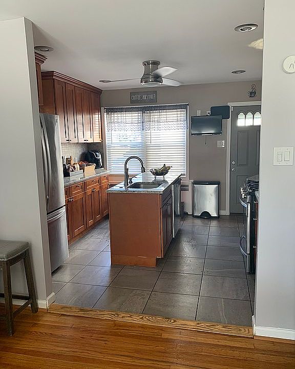 2.5 Bathrooms, main bathroom has walk-in shower, 1/2 bathroom in living room. Large fenced in patio for privacy. 1 car driveway that enters a finished basement w/kitchenette, laundry room, and full bathroom