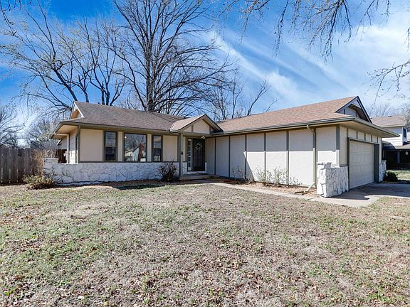 This beautifully updated four-bedroom, two-and-a-half-bathroom ranch is located in the highly desirable town of Derby, KS, offering easy access to a variety of restaurants, shopping, and amenities. With fresh interior and exterior paint, new plumbing and light fixtures, and stylish wood laminate flooring throughout, this home is move-in ready. The updated kitchen and bathrooms add a modern touch, while the spacious layout provides plenty of room to spread out. The master suite serves as a private retreat, featuring a spa-like bathroom with a walk-in shower, sink, and toilet. The full basement offers even more living space, including a large family room with a cozy woodburning fireplace and a convenient walk-up wet bar, perfect for entertaining. An oversized basement laundry room with a wash sink and a separate large storage room add to the home's functionality. Outside, the covered patio and fenced yard is shaded by mature trees, creating a peaceful and private outdoor setting. With a two-car garage and thoughtful updates throughout, this home is a fantastic opportunity to enjoy comfortable living in a prime Derby location.