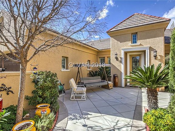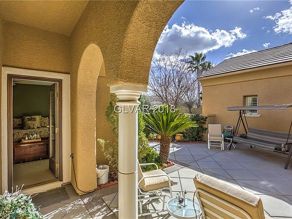 Truly feel at home in the Exclusive Guard Gated Summerlin Vineyards. Large Courtyard Entry, Office & Bar, High-End Appliances. Private & Extremely Quiet Lot. Original owners and not a -speck- of dust in this home since day 1. 4 beds inc Casita, all w/ baths. HUGE master closets, full Granite Master Bath w/ Jaz Spa. Full shutters, 8'gar door, CAT5wired, xtra attic insul. FULL alarm system paid by HOA. Close to jogging trail access. Ideal living.