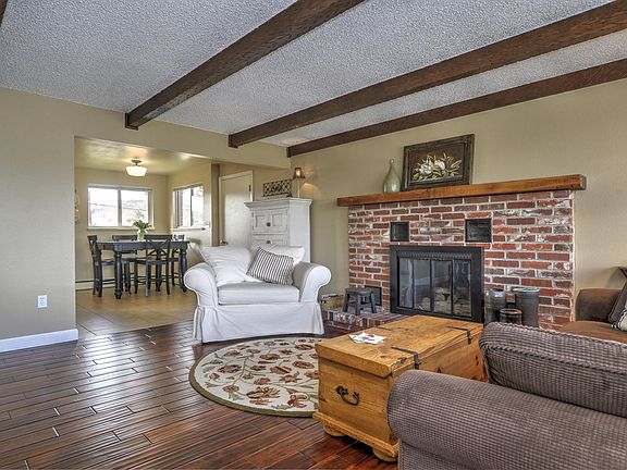 Incredible home in Golden with majestic mountain views! Yes, this charming 2 bedroom, 2 bathroom home is located on a premium 7,059 SqFt lot surrounded by the best in Colorado. The main level offers a welcoming family room with incredible detail in the ceiling with wood beams, handsome brick fireplace, hand-scraped wood floors, open to the dining room with majestic mountain views leading to the spacious kitchen, an oversized master bedroom with wood ceiling, an additional bedroom and full bath with tile floors and granite counter. The walk-out finished basement has a wonderful rec room with fireplace, ¾ bath and laundry room, flex space, and sliding door leading to a second patio. What’s more, this home has lovely landscaping with a park-like backyard, a workshop in the garage AND it's perfectly nestled into the neighborhood while being minutes from Southridge Park, Ulysses Park, South Table Mountain Park, Fossil Trace Golf Club, and Golden's Town Center – simply an amazing Golden home!