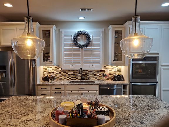 Stunning Home in Kings Grove! Open floorplan on a quiet street with a private fenced backyard that backs to the woods. Hardwood floors through the main including master bedroom. Hardwood on stairs with iron pockets. Gourmet kitchen is a dream with double ovens, 5 burner gas cooktop, upgraded granite extended 6 inches, and pull out shelves in soft-close cabinets. Oil rubbed bronze finishes for plumbing and lighting fixtures. Under-cabinet lights, recessed cans in kitchen, family room, master bedroom, and loft. Master on the main with a bay window and tray ceiling. Walk-in shower in the master bathroom. Granite countertops in master and second bath. 9 foot ceilings on first and second floor with 8ft doors. Plantation shutters throughout most of the home. Covered stone front porch. Utility sink in oversized garage with side door to yard. Fantastic backyard with 6 foot white vinyl fence with no one behind you, but trees and privacy.