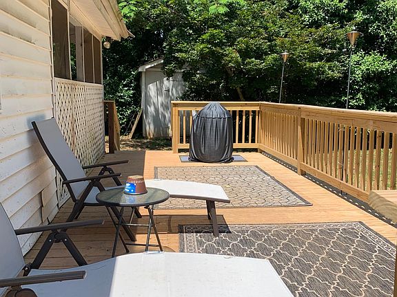Nice 3BR brick home. Ceiling fans all bedrooms. Large flat fenced back yd. , Storage Shed , Utility Room, Screened Porch, Deck, Kitchen appliances including Dishwasher, Private tree lined backyard, 10 x 10 laundry room with shelving, Finishes are carpet, hardwood, tile and stone. Home is unfurnished. Pictures show current tenants furnishings.