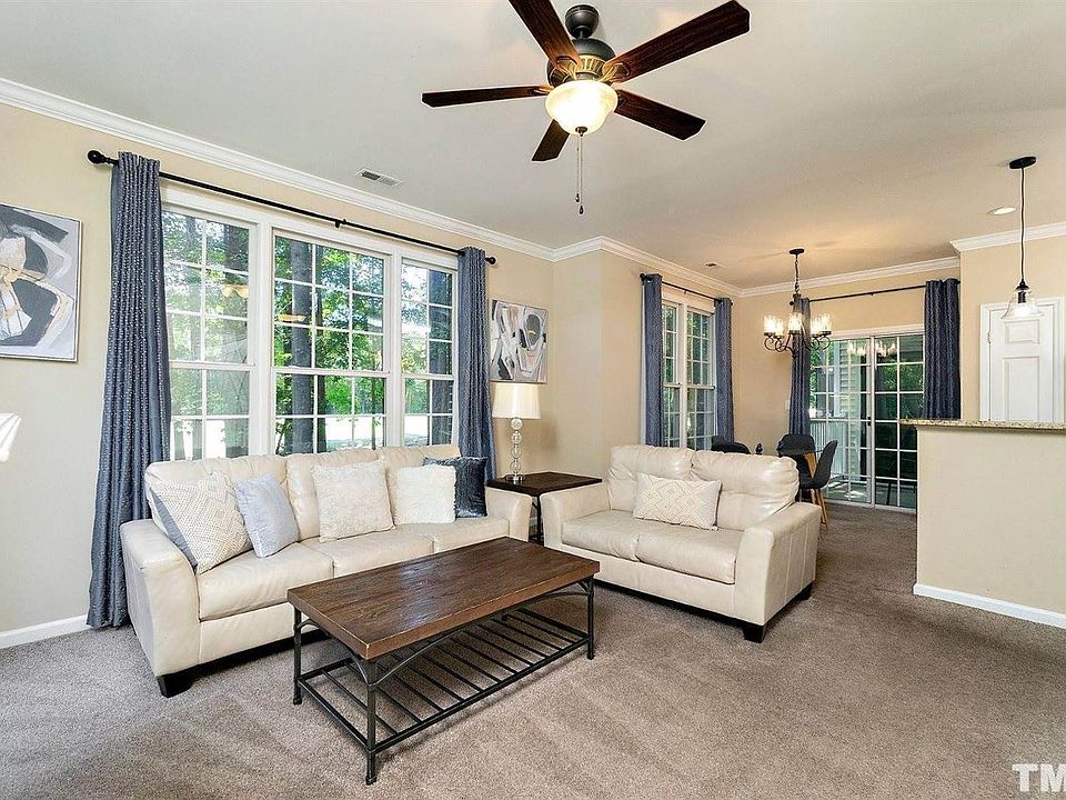 AMAZING VIEW OVERLOOKING PRESTONWOOD GOLF COURSE. Beautiful 2 bed/2bath condo with all MAIN FLOOR living. Tons of natural light and windows! Granite countertops in the kitchen and bathrooms. Large walk-in closets in both bedrooms. Fully furnished and comes with all houseware items including cookware, dishes, linens, bedding, towels- just bring a computer. Walk to Morrisville Park. Close to shops & restaurants. Minutes to RTP, RDU, UNC, Cary. Lives like a ranch! $1950 w/o utilities, $2250 w/ utilities. No dogs over 35 lbs and no breed mix containing the following breeds: Pit Bulls, German Shepherds, Rottweilers, Mastiffs, and Boxer.
