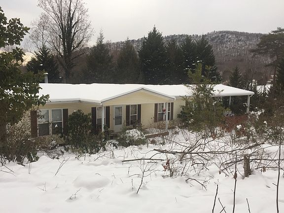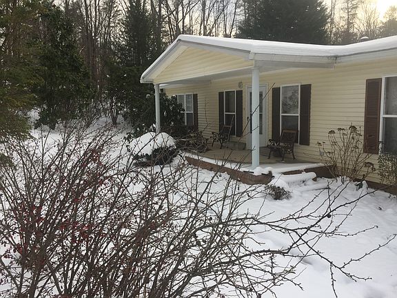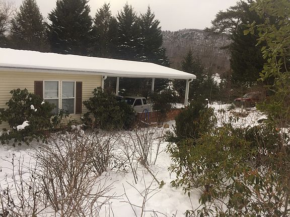 Cute triple-wide in great location, gorgeous mountain views, privacy provided by lots of wooded acreage, +/- 7.74 acres subject to survey, 3BR/3BA, large kitchen/dining area, SS refrig to stay, lg laundry room, lg master suite, one of the other BR has it's own private bath, metal roof, attached carport, nice front porch and back deck, grapevines, fig trees and blueberry bushes, nice garden area, storage building, paved circle driveway, nice landscaping with many flowering bushes and trees