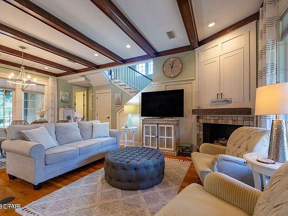 This condo affords all the comforts of a single family home, while capitalizing on the benefits of condo living. This home has been appointed with quality finishes, including white oak hardwood flooring throughout and tile in the bathrooms. The first floor is comprised of a custom kitchen, laundry room, a half bath, living and dining rooms, and the primary suite. The custom kitchen has a new electric cooktop and countertops, wine refrigerator, and stainless steel appliances. The large windows provide exceptional natural lighting into the dining room and the living room. Additionally, the tile fireplace and the beamed ceiling adds to the serenity of the living room, making it the perfect place to enjoy your time at home. The primary bedroom is generously sized and has its own en suite bathroom that consists of a stand-alone shower, garden tub, dual vanities, make-up counter, and a large walk-in closet. The second floor hosts two generously sized bedrooms, with a jack and jill bathroom, and a large flex space over the garage that can be used as either storage, a work out area, or even an office. The HOA dues at The Courts cover exterior maintenance, pest control, trash removal, yard maintenance, and exterior insurance. Wild Heron is an exclusive, low density, community in Panama City Beach. The community amenities include a lakeside heated swimming pool, hot tub, fitness center, boathouse with complimentary kayaks and paddle boards, community dock, walking trails, and a fire pit.