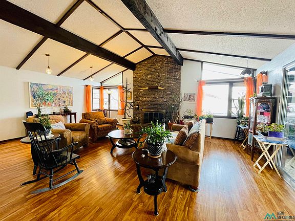 This 3 BR / 2 and 1/2 BA home speaks well of both past and present in this peaceful and tasteful refuge from the world. Close to downtown and the University, this mid-century charmer sits on 3 city lots and has plenty of space for gardening, entertaining, and unwinding. Vaulted ceilings allow light to simply flow throughout this lovely detailed home. Original beams and light fixtures mingle well with modern decorative touches. Newer flooring throughout the home sparkles. Upper level of home has brightly lit kitchen, wide open living room with fireplace, formal dining room, and cozy sunroom with views. Lower level has two guest bedrooms, recently remodeled full bath, and a dreamy primary bedroom with ensuite three-quarter bath. A second sun-room/exercise room walks out to a large fenced backyard. Included adjacent lots have stone retaining walls and room to spread out and enjoy privacy. This is the truly the Silver City home that you have been waiting for.