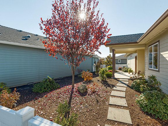 Rare opportunity, a 0-lot line accessible home in The North Village of Twin Creeks Quality built by W.L. Moore Construction, built to Lifelong Housing standards & certified Platinum by Earth Advantage. A beautiful single level home w/an open and spacious floor plan, that is accessible & adaptable!. Home is directly across from an Open Space. Trayed Living Room overlooking neighborhood park. Large dining area. Kitchen with single french door to side covered and uncovered patio, under cabinet lighting, granite counters .Luxury Vinyl Plank flooring thru-out all living areas. Utility room w/extra cabinets. Primary Bedroom with sitting area and french door to private patio, primary bath w/custom no-step tile floored shower w/seat, tile floors, walk-in closet, and linen cabinet. Guest Bedroom w/trayed ceilings adjacent to guest full bath. Garage is oversized and finished w/pull down stairs to storage. Beautiful landscaping & white vinyl fencing,. All appliances included.