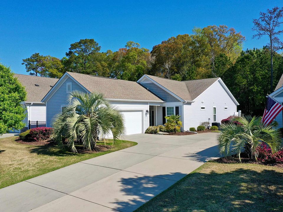 This END UNIT garden home shows like a model! You will be wowed by the OPEN FLOOR PLAN AND HIGH CEILINGS! This property features a 2 car garage, single level, attic storage in garage, granite countertops in kitchen, tile floors, plantation shutters throughout the home, and recently replaced carpet. HVAC was replaced in 2023! There is also a Carolina room with EZE-Breeze windows. Schedule your appointment today! You will be glad you did! Buyer is responsible for all measurement verifications.