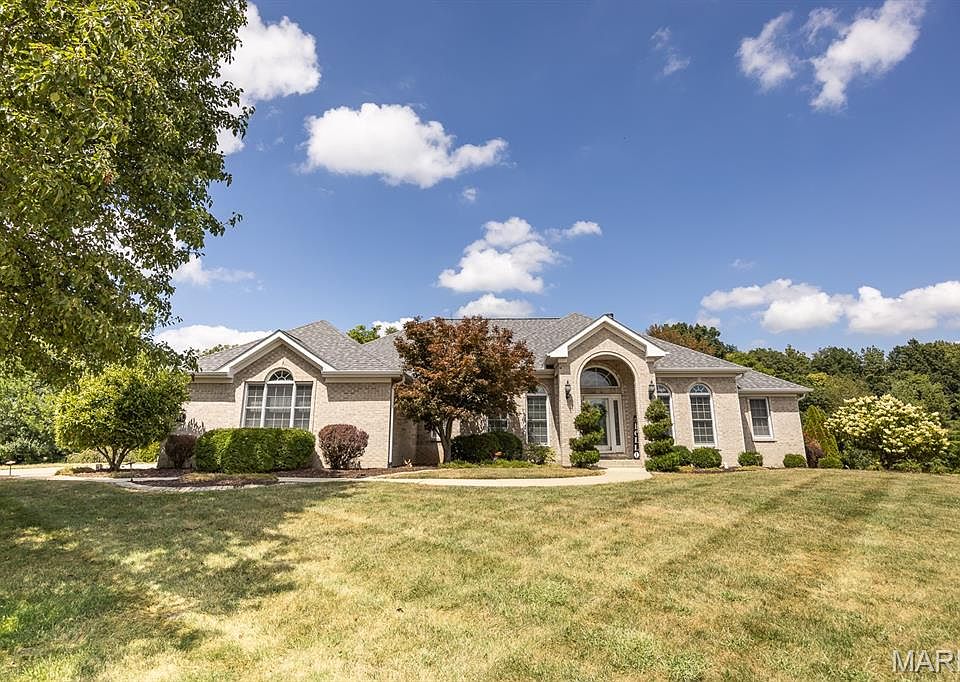 WELCOME TO THIS STUNNING FULL-BRICK ATRIUM RANCH HOME THAT TRULY HAS IT ALL! Featuring 5 bedrooms, this home blends elegance, function and updates throughout. Step inside to find fresh paint, refinished hardwoods, and new carpet in bedrooms. The formal dining room flows into the great room, highlighted by a gas fireplace and a tray ceiling. The kitchen is a chef's dream with a gas cooktop, center island, walk-in pantry and newer light fixtures. Surround sound by the pool adds to the entertainment vibe. Conveniently located spacious bedrooms with jack 'n jill bath and walk-in closets are located on the opposite side of the home. The luxurious primary suite featuring dual sinks and a walk-in closet. The finished basement offers even more living space with a second fireplace, bar with sink, built-in shelving, and the 5th bedroom. Outside is a backyard paradise on a wooded tree-lined lot. The in-ground pool with waterslide, diving board and heater rounds out this perfect home! Other features include covered patio with fans & lights, perfect for gatherings. Newer pool pump, line & cover; NEW HVAC; NEW roof & gutters, sprinkler system & more! MUST SEE!