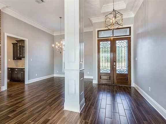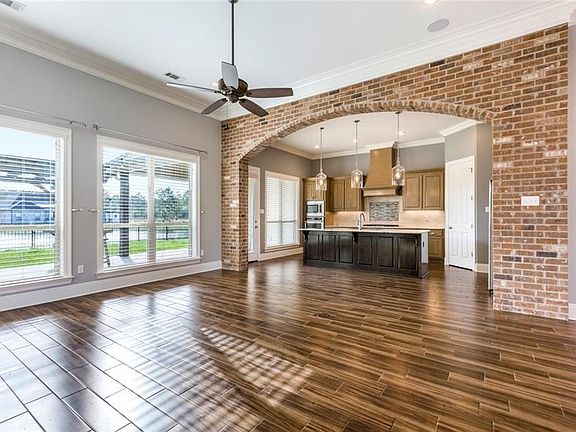 Desirable pond-facing lot in Madisonville's growing Spring Haven subdivision. Terrific split floor plan w/4 bedrooms & 3 full baths. You won't believe how much storage is included! Previous owners took care of all the "extras" for you: high-end refrigerator, perimeter fence, blinds, extended patio and pergola, plus epoxy garage floor. Master suite features coffered ceiling & hi-tech Kohler digital shower. Jack-n-Jill bath between two guest rooms with large walk-in closets. Community pool. No carpet!