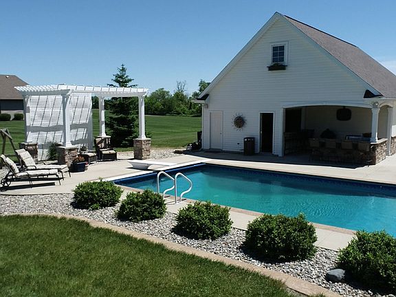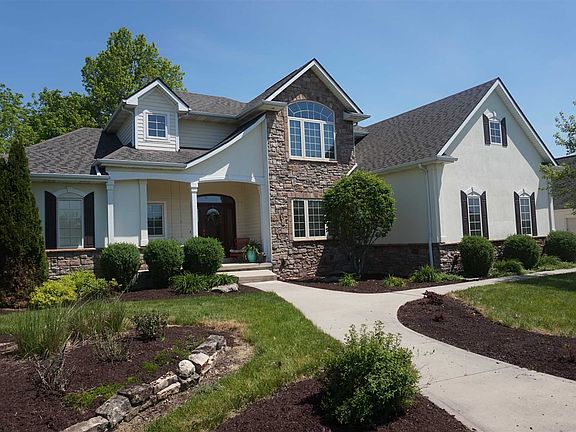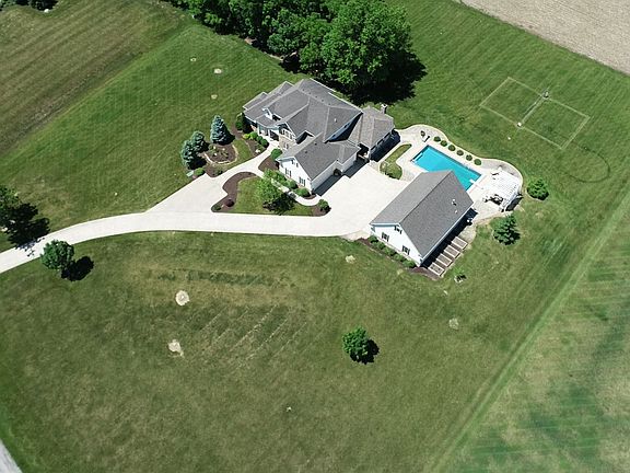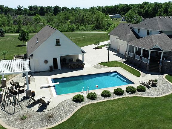 Minutes to Parkview Regional Med Ctr., Dupont Hospital, and Northwest Allen County Schools, this property is a "must see!" Gerardot Architecture/ Amstutz Builder, this beautiful two story house with full, finished daylight basement on 2.8 acres offers practical and stylish design. The large kitchen has a 6x5 pantry, island with raised bar, a hearth room with fireplace, and a progressive household manager center. Step outside to large deck & pergola with outdoor kitchen complete with a fireplace and pizza oven, overlooking an in-ground pool. The views to a natural setting of woods and fields will be perfect for bonfires with friends and family. The detached garage is equipped to provide office space, storage of hobby equipment, more parking, and a pool-side kitchen/bar. The main floor master suite will be a lovely owner's retreat. The master bath offers his/her vanities & closets, a private shower room and soaking tub. The finished basement provides an open space for TV, movies & recreation, exercise /office /playroom, and a full wet-bar. The detached garage is heated with a 2nd furnace, has a walk-up attic, gear room, half bath, & office space, in addition to additional car/boat storage. The in-ground 18x36 pool has a cover and depths 4'-9'. The deck and pergola was installed by Merv Zehr and provides additional space for entertaining. Don't miss this one-of-a-kind property!