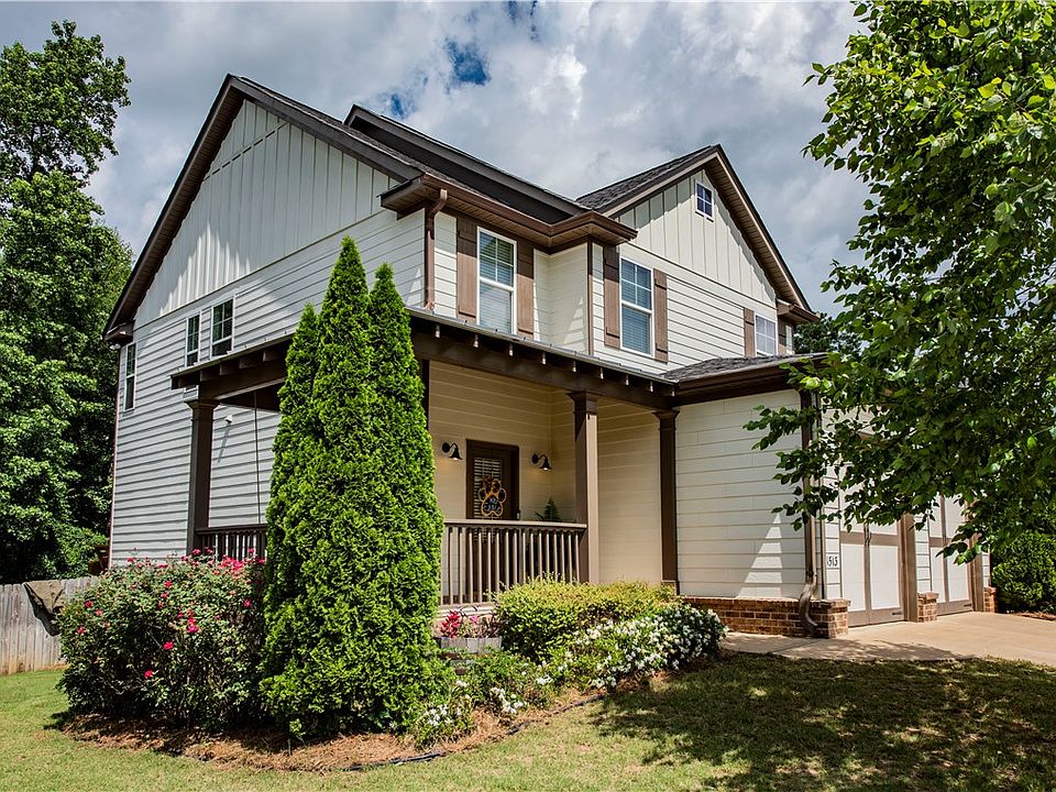 Pristine, Move-In Ready Home in a SUPER location! Stone Creek is so convenient to Schools, Shopping, Restaurants, Entertainment and more! The cozy front porch is inviting and welcoming. Upon entering the sand & finish hardwood floors & crown molding are sure to impress. The wood-burning fireplace is the focal point in the Great Room along with the open-concept dining and kitchen. Granite, stainless steel appliances and a large island perfect for a snack! Upstairs the Master Bedroom Suite is BIG and offers a Spa-like EnSuite Bathroom with a Soaker tub and Separate Shower plus His & Hers walk-in closets. Outside the deck offers the perfect spot for a back-yard cookout with No back door neighbors, only trees! Truly a MUST see.
