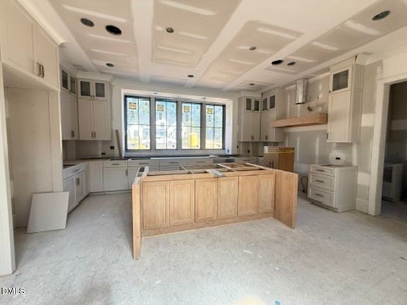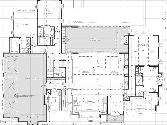 Stunning True Ranch by award-winning L & L of Raleigh, designed by Frazier Home Design. Offering 4,630 sq ft of luxury living on a private, pool-ready lot backing to woods. Main-level layout features wide plank hardwoods, soaring ceilings, and three en-suite bedrooms, including a vaulted primary suite with a spa-like bath—zero-entry shower, freestanding tub, and elegant finishes. Chef's kitchen with 48'' Thermador range, built-in Thermador refrigerator, oversized quartz island, and scullery with space for a second fridge. Vaulted family room with fireplace and custom built-ins opens via large sliding doors to a screened porch with infratech heaters, fireplace and full outdoor kitchen—ideal for seamless indoor-outdoor living. 3-car, side entry garage. Upstairs includes a 4th en-suite, expansive rec room, half bath, and conditioned walk-in storage. Open cell spray foam insulation throughout roof deck.