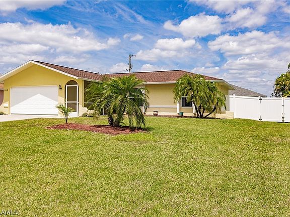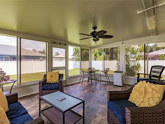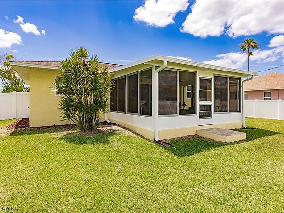 Welcome to your SUNNY SW Florida new residence!! NOT IN A FLOOD ZONE. Immaculate, Light, Bright and Spacious. EXTRA LARGE LANAI WAS ADDED with Tile Floors and Sliding Impact windows-- Comes with a portable A/C and Wall FIREPLACE! FENCED IN YARD, NEW A/C 2022, NEW ROOF 2023, NEW HOT WATER 2024, and HIGH IMPACT STORM WINDOWS THROUGHOUT INTERIOR! Quartz kitchen counter tops & Luxury Vinyl Floors THROUGHOUT. Owners have taken great pride the last ten years, and are retiring out of state. Motivated and ready to go! Can come furnished if desirable. Cape Coral, Florida allows you to keep your boat on the side or in your backyard or garage!! Lots of freshwater and salt water launches in Cape Coral. Great Boating community, Plenty of Golf, Bike Paths, Pickle-Ball, and Parks and Recreation. Cape Coral is a great destination full-time or snow-birding! Come see this adorable property today!