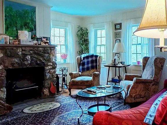 This Town of Warwick Cape on almost an acre features a three-car detached oversized garage with workshop, flowering gardens with waterfall and koi pond. The glass sunroom with hot tub provides warmth during the winter and has access to the fenced heated inground pool with paver patio. Enter into an enclosed front porch and formal living room with fieldstone wood fireplace and built-in shelving. A formal dining room has a brick accent wall with shelving and built-in storage closet. The eat-in kitchen with four oversized windows overlooks the waterfall and koi pond and is updated with stainless steel appliances, five burner range with dual ovens, granite counter, solid wood cabinets and custom backsplash and Old-World Charm from beamed ceiling. Full bath has been remodeled with tub, tile shower, pedestal sink and storage. Laundry and mudroom complete the first floor. Upstairs has two bedrooms, another updated bath with shower, an office and a craft/workshop/storage room. The well was replaced in 2023. Energy efficient solar panels are owned. Property is gently sloped with two additional storage sheds. Located one mile from Warwick Park and Ride for commuting to New York City.