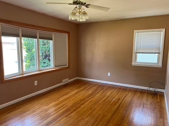 Take a look at this charming and cute home located conveniently to MSU and an elementary school. Notice on the outside the steel siding and newer windows plus the attached garage and fenced yard. Entering through the front door, you will be in the bright living room with hardwood floors. Off to the right is the kitchen and a cute area perfect for your table. Also on the main floor you will find two bedrooms, one with two closets, and your full bath which has been updated. Heading downstairs, you will find your primary suite with an attached 3/4 bath semi finished. There is plenty of room to have a sitting area and bedroom area. Great closet space finish off this area. There is also a nice sized laundry area with utility sink(washer and gas dryer stay) plus lots of storage available in the mechanical area. The attached garage has a newer insulated door and opener plus there is amazing attic storage and free standing cabinets. Heading into the private backyard, you will find a poured concrete patio, a shed, a sandbox and a garden area.