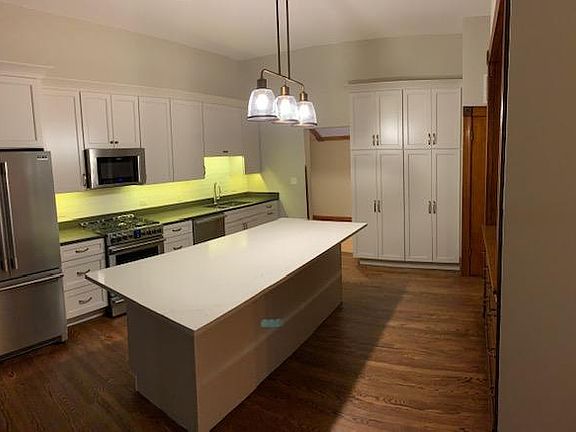 Skinner school. Available June 1, 2022 West Loop recently renovated unit on OVERSIZED LOT. Rooms are Huge!: BEDROOMS: (1) 15'8" x 15'8" (2) 15'5" x 13'9" (3) 14' x 12'7" EAT IN KITCHEN: 15'9" x 13'6" DINING / FAMILY ROOM: 19'4" x 14'4" LIVING ROOM 15'9" x 15'9" PRIVATE DECK 21' x 10' High ceilings, Chef's kitchen with high end appliances, quartz countertops, wine refrigerator, pantry, Mudroom, office nook off kitchen, W/D in unit, extra storage out of unit, GARAGE SPACE extra $100/mo. No Dogs. Pet fee. Quiet Owner occupied 2 unit building, New Marvin windows, tons of natural light, UNIQUE FIND. Tenant pays Electric, Gas and TV/Internet. Owner is LIC IL Managing RE Broker. Min. 725 min. credit score required for all adults living in unit.