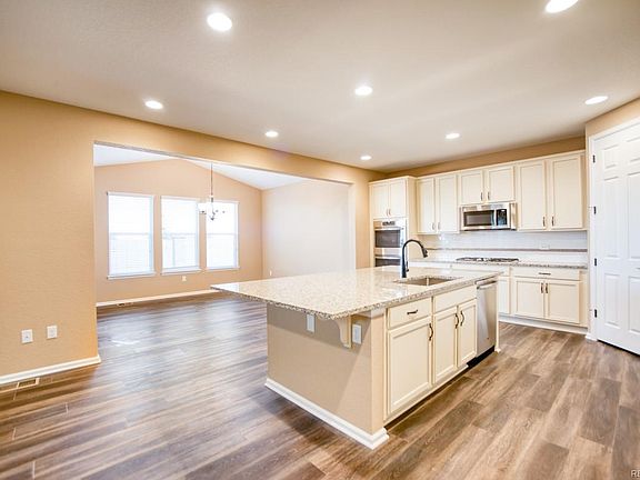 This finished Yorktown plan has a Chef's Kitchen that includes stainless 66' refrigerator, gas cook top, double ovens, upgraded cabinetry and granite counter tops. Adjacent to the kitchen is a sun room with access to the relaxing covered patio. Upstairs there is a loft, four bedrooms including a master suite with a deluxe master bath. The finished basement adds an additional bedroom, bathroom and entertaining area. This home is complete and is loaded with options and upgrades! Ask about our special incentives! One of Thornton's newest communities, Fairfield offers direct routes to DIA, Denver and Boulder via E-470 and I-25. Residents will enjoy community park/playground, close proximity to golf courses, award winning Adams 12 schools, ball fields, parks, restaurants and more!