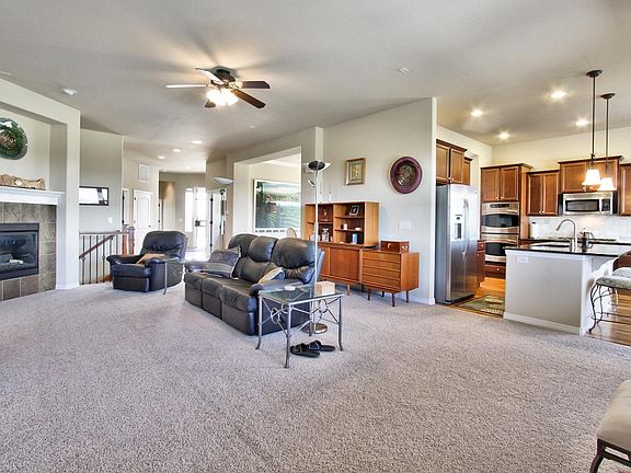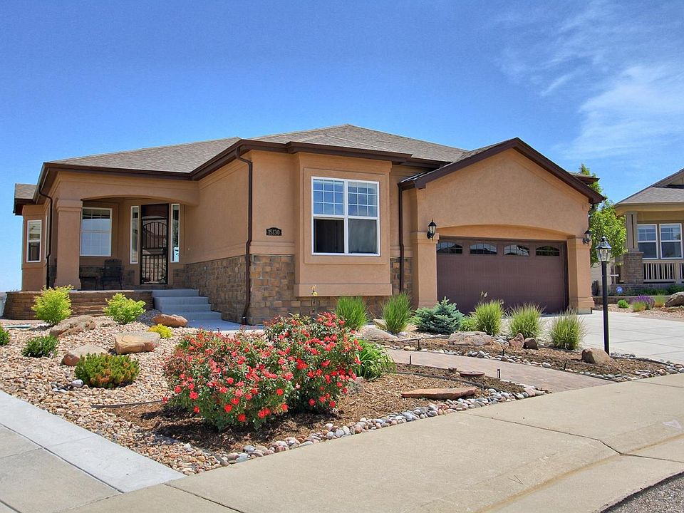 One of the only golf course walkout lots available on Heritage at Todd creek. Amazing mountain, golf course and city light views. Buy this house for $305,000 down and never make a payment using FHA reverse mortgage. Enjoy the rising sun over the course or setting over the mountains. Extended deck has both a covered portion and open area. Under the entire deck is an expansive patio. The current owner had doors installed to park his golf cart inside the walkout basement. The large lot is over a quarter of an acre and is xeriscaped for low maintenance and water consumption with firepit. This is one of Lennar's largest models with over 2,550 square feet finished and the same unfinished in the walkout basement. Very open floorplan has a very large master suite and a second bedroom with bath en suite. Large study with built in hickory furniture. Built in entertainment center is also custom made hickory in the great room. Granite counters and all kitchen appliances included.