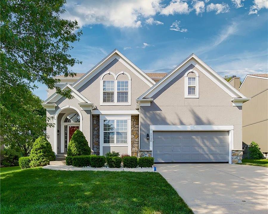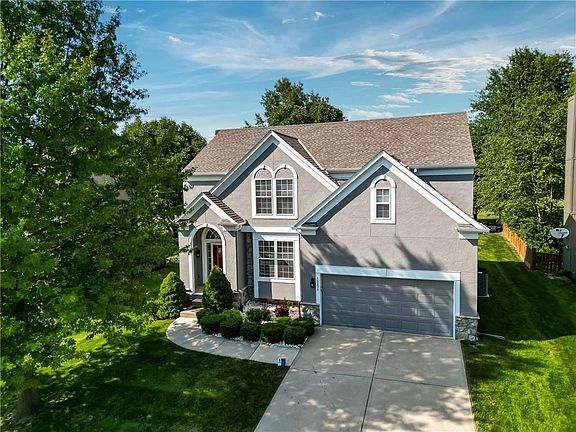 Gorgeous 2 story in desirable Woodland Creek. Beautiful hardwood floors throughout main level. Newly Updated kitchen with large kitchen island and quartz countertops. Fantastic master bedroom and bathroom. Master bathroom has been completely updated with quartz countertops, soaker tub, walk-in shower and two large walk in closets. Newer paint throughout. Super fun basement space with huge wet bar and 5th non-conforming bedroom. Stunning backyard has large stamped concrete patio and backs up to tons of green space. Enjoy this beautiful oasis in a fantastic location!! This second homeowner has lovingly maintained this beautiful home for 20 years. Don't miss this beauty located in the award winning Olathe School District!