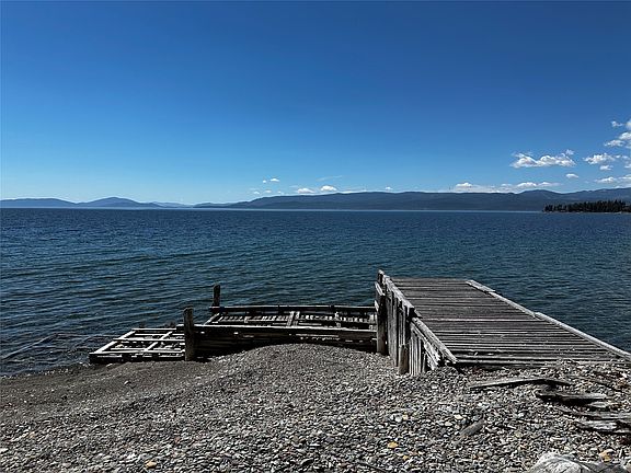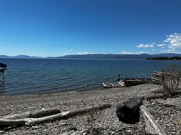 Priced to sell! Stunning piece of paradise, showcasing 98 feet of beach frontage on Flathead Lake. The open floorplan of this Amish handcrafted log cabin, featuring two bedrooms on the lower level plus a loft, invites you to gather around the main level oversized island in the kitchen while delighting in unparalleled views. Enjoy year-round comfort with solar shades on the main level designed to ensure a welcoming and pleasant atmosphere by reducing heat and glare from the setting sun. Explore the charm of the .65-acre property adorned with cherry, pear, and apple trees, raspberries, and more, creating a scenic and abundant landscape. Roam down the pathway and across the road to the lake where the unfinished beachfront tiki bar awaits inspiration and the dockside self-contained compostable toilet provides convenience during fun-filled days on the lake. This property has excellent potential as a profitable short-term rental. Conveniently located near the village of Bigfork and Eagle Bend Golf. 40 minutes from Glacier International Airport and within an hour from Whitefish Ski Resort and Glacier National Park. Contact Susan Petersen @ 406-314-2232 or your real estate professional.