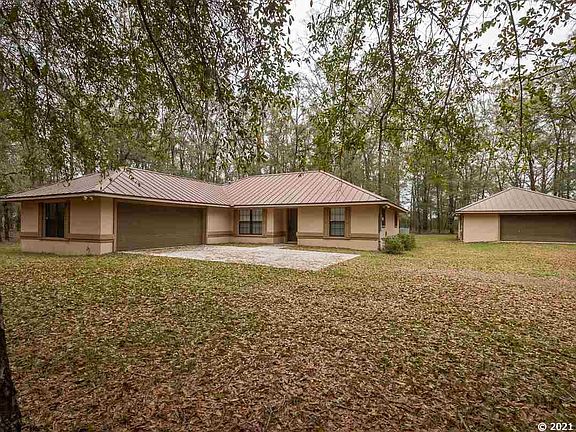This is a beautiful home situated in the middle of a wooded, 5 acre parcel. It truly provides a feeling of complete privacy. Upon entering, you see the great room with cathedral ceilings and french doors leading to the back yard. The spacious, tiled dining room is situated off the kitchen. There is also a lengthy breakfast counter for morning meals and hanging out time. Plenty of oak wood cabinets and large pantry are included. It is a split bedroom plan with the master on one side of the home and the other 2 bedrooms on the other. It has a gorgeous owners bath with a Jacuzzi tub and a tiled walk-in shower with a rain head shower faucet. The other bedrooms have quite large closets. The roof is a standing seam metal roof.The over sized garage is 21' x 27'. The exterior features include an open patio that is fenced to keep the family pets contained. As a bonus, there is a separate 26' x 30' (780 sq ft) Drive thru detached garage and a enclosed office/workshop. Make an appointment to see it today!