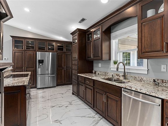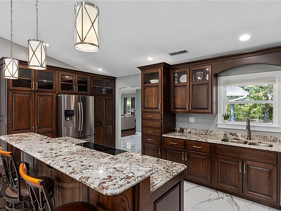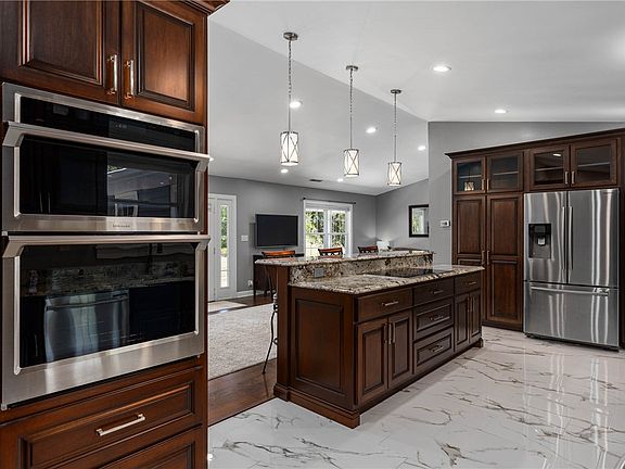 Gorgeous home on 7.7ac w/ an 80x24 REC building that features a 45x24 finished rec area w/ fireplace, kitchen/bar, and bath. This building will host your largest gatherings and fun times!!! This room walks out to a really nice covered patio. ALSO in this building is a 35x24 heated garage w/ a 10' tall overhead door. And a nice lean to off the back side. Home was completely remodeled in 2017 w/ open floor plan & Beautiful NEW kitchen and appliances, windows, flooring, lighting, baths, cathedral ceilings, on and on. With 2876sf... this home can be used as a 3, 4, or 5 bedroom home.