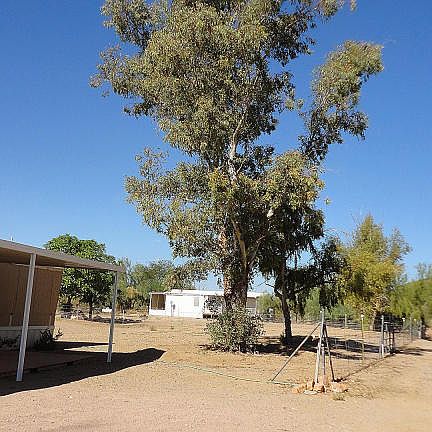 MOUNTAIN VIEWS.UNDERGROUND ELECTRIC, SHARED WELL,SEPTIC.FULLY FENCED.DEED RESTRICTED TO SITE BUILT HOME WITH OTHER HOUSING ALLOW FOR UP TO 4 YEARS WHILE YOU BUILD. THIS MOBILE IS SITUATED AT THE FRONT OF THE ACREAGE TO ALLOW FOR SITEBUILT HOME TO THE REAR. PLENTY OF SPACE FOR ADDITIONAL STRUCTURES AND YOUR DREAM HOME.2 BEDROOM,1.75 BATH WITH OFFICE/DEN OR 3RD BEDROOM.RAISED COVERED DECK AT THE FRONT OF THE HOME IN ORDER TO ENJOY THE QUIET MOUNTAIN VIEWS.REAR CANOPY AT SLIDERS. ELECTRICAL PANEL REPLACED IN 2013. ROOF RESURFACED/2013 2'''' X 4'''' WELDED WIRE FENCING. MATURE TREES. 2 JACARANDAS, 4 EUCALYPTUS, MESQUITE AND OLEANDER. MAJESTIC SAGUARO CACTUS. UNINCORPORATED MARICOPA COUNTY ZONING R-43. ADDITIONAL LOTS AVAILABLE.**12 MIN TO MEDICAL, 7 MIN TO LOOP 303, 30 MIN TO LAKE PLEASANT
