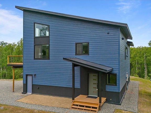 Newly completed contemporary on market at $136,000 below construction cost. Enjoy lingering sunsets, seasonal mountain views and spectacular northern lights panorama in this stunning, hilltop home set in Talkeetna's forest canopy high above the flood plain. Perfectly located with convenient access to the 14-mile bike path, XY Lakes, library, airport and just a 2-mi bike ride into historic down-town Talkeetna. This well thought out design has2x6 construction and 3x8 laminated studs in the living area, vaulted ceilings in the great room, window walls, natural light galore, Blaze King wood stove, LVP flooring, a bright kitchen with quality appliances and quartz countertops, 3BR plus den/office, 2 full and one 3/4 bath, and an oversized heated double garage. The Generac 10kw back-up generator system, above ground 120G propane tank and 300G above ground oil tank, an 8/10'x40' deck with sweeping views and yard access. Fiber optic internet network. Ring security system. Attention to detail and pride of ownership throughout.