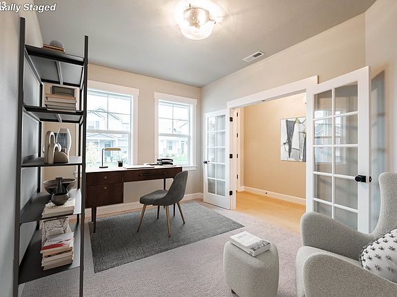 Relaxing Owner's Suite with gorgeous vistas to the valley and luxurious walk in shower. Main level study or 4th bedroom with French Doors. Spacious great room and focal point fireplace for those winter nights. Quartz kitchen Counters, designer selected cabinets and hard surface flooring. Lower level bonus living area with access to the rear yard. Large deck, patio, and fenced yard for entertaining and play space.