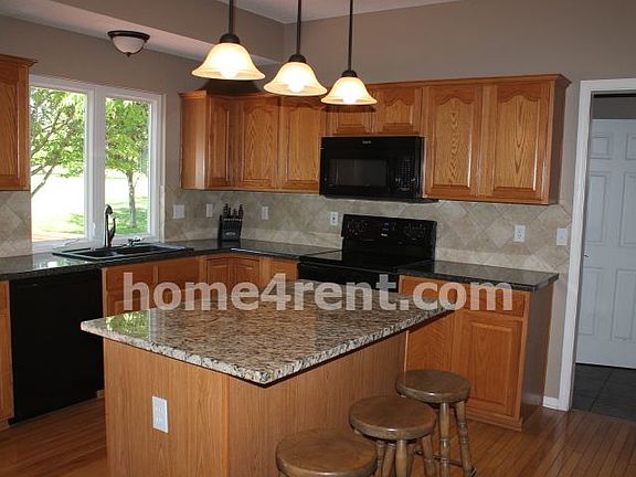 Olathe South High School. (Please Note: The Basement is Unfinished with Lots of Storage Space!) When you first walk in the front door, you will find the Formal Dining Room to the right while the open Living Room is directly ahead. The Living Room is open to the breakfast area and kitchen. The kitchen has an island with a granite countertop and lots of cabinet space! Just off the kitchen is the laundry room and half bath. Access to the back yard is also just off the kitchen. This back yard is amazing, with a country like setting! All four of the bedrooms are upstairs. The primary bedroom has an attached bath and 2 walk in closets! The other three bedrooms share the hallway bathroom. The basement is unfinished, perfect for storage or an additional play area or man cave! This home is located just a short walk from the neighborhood pool! Home Rentals Services cannot be responsible for this listing's accuracy when listed on a third party website. For accurate amenities and availability please visit home4rent.com The appliances in the pictures do not necessarily represent what is provided with the property. Fireplace may be decorative use only.'