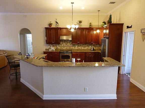 : This modern CBS home features 4 beds, 3 full baths, 2-car garage and is located on a 1.23 acre lot. Luxurious interior with high ceilings, architectural accents, and wood flooring. Large open kitchen with granite and stainless steel appliances. Wood-burning fireplace. Large master bath with Roman tub, dual walk-in closets. Sitting area in master bedroom. Oversized 24x14 fourth bedroom could be used as recreation room or office. Enclosed porch and large concrete patio is perfect for entertaining guests. Use of shed/garage in back not included in rent. Call Today Sanford Solomon 561-512-4994 ERA Home Run Real Estate courtesy of Berman Realty