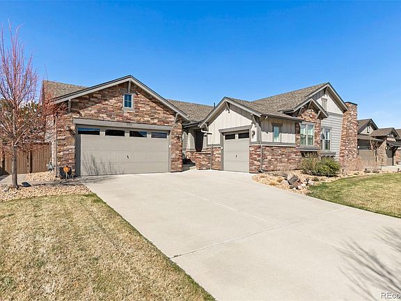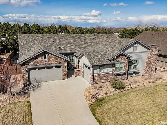 Where sophistication meets livability in Golden's sought-after community, The Gardens at Table Mountain. This expansive ranch home features a main level with rich hardwood floors, plantation shutters & a welcoming living room with a sleek fireplace & state-of-the-art surround sound. The space flows seamlessly into a chef's kitchen complete with a large granite island, walk-in pantry, double oven with convection microwave & an eat-in dining area. A formal dining room, connected by a stylish bar, makes entertaining effortless. Step outside to a covered patio and a backyard showcasing a tiered paver patio, fire pit & mature spruce trees, offering privacy & west-facing views of North Table Mountain. The primary suite is your private escape, complete with a quiet sitting area, a spacious bathroom with soaking tub, oversized shower, dual vanities & warm wood cabinets. Two more en-suite bedrooms provide privacy & comfort for family or guests, while a dedicated office makes working from home a pleasure. Thoughtful touches abound, including a well-appointed laundry room with dual access, a mudroom off the 2-car garage & a separate 1-car garage that is ideal for extra storage or a workshop. Downstairs, the fully finished basement transforms into an entertainer's dream. Unwind in the inviting recreation room featuring a modern media wall, linear fireplace, immersive surround sound, floating shelves, custom cabinetry, beverage refrigerator & a quartz countertop wet bar. Carve out time for a workout in the private exercise room behind sliding barn doors before enjoying your favorite vintage from the dedicated wine room. A spacious 4th bedroom or flex room with an adjacent full bath offers even more versatility, while a generous storage/workshop area completes the lower level haven. Located in a vibrant neighborhood with a community pool, playgrounds, & access to a walking trail. Just 4 mi to Downtown Golden, 13 mi to Downtown Denver & minutes from I-70 for quick mountain access.