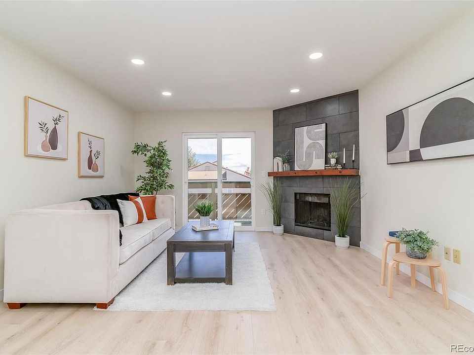 Fully remodeled Upstairs private end-unit in a small complex within walking distance to shopping and the park! Easy access to I-225, and minutes from the VA and Children's hospitals, and DIA. Spacious 2 bedroom, 1 full bath, with a laundry room. Brand new appliances, floor, windows, sliding door, and Carrara white counter tops. Covered carport space. The cozy living room has a wood-burning fireplace and the balcony has a lockable storage closet. Great opportunity at a great price
