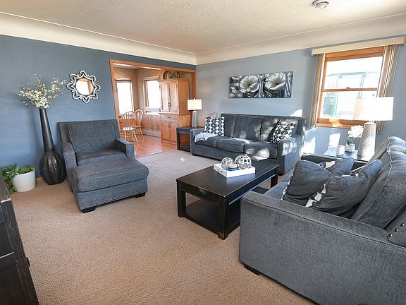 The brick front and mature trees contribute to the great curb appeal of this home. Three bedrooms on the main floor. Custom kitchen cabinetry. Custom stone flooring in the finished basement. Enjoy the fenced yard, double garage and large shed. Central air conditioning.