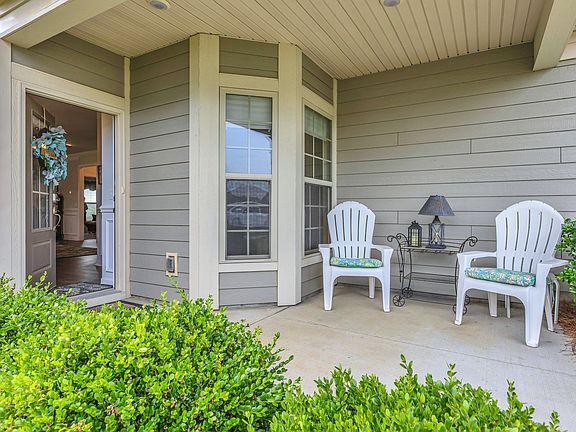 Former model home with tons of upgrades, move in ready, one owner, 3 bedroom 2 bath open concept, one level Taft model located across the street from one of the nicest pocket parks in Southern Springs by Del Webb 55+ active adult community. Inviting great room with crown moulding, wainscoting, ceiling fan, and a neutral color palette. Dining area can accomodate a large table. Kitchen with white cabinets, granite countertops, roll out shelving, large island for entertaining, slide in gas range, stainless steel sink, double door pantry, and tile backsplash. All appliances convey including washer and dryer. Primary bedroom with lots of natural light overlooking the lush backyard space, ceiling fan, ensuite primary bath with double sink vanities, granite countertops, walk-in tile shower with glass doors, and a huge primary closet. Laminate hardwood floors in main living areas, tile in bathrooms, carpet in 2 bedrooms. The front bedroom/office/flex space has shiplap wall, crown moulding, laminate hardwood floor, lots of natural light and a double door closet. Enjoy watching the birds from your private covered lanai. Sit on your front porch and catch up with friends and neighbors.