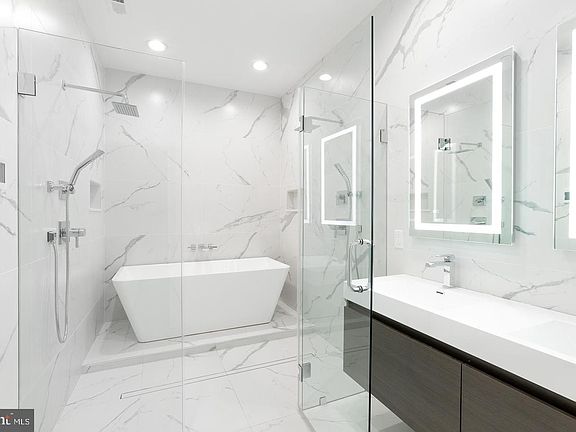Get ready to be wowed by this stunning 3-bedroom, 3-bathroom apartment previously featured in Philly Magazine and part of a luxury condo community. Ultra-luxurious, high-end new construction, with a huge backyard outdoor space. The first-floor features an incredibly modern yet elegant kitchen with seamless, soft-closing white cabinets and waterfall quartz countertops. The kitchen is equipped with a walk-in pantry and Jenn-Air Luxury Appliances like an in-wall double oven, cooktop stove and range hood, wine fridge, and dishwasher. Oversized living room area and the first floor also features a spacious bedroom, a beautifully modern full bathroom with LED-lit mirrors, built-in state of the art speakers, and a massive backyard for all your favorite outdoor entertainment activities. The lower floor features another spacious bedroom with an ensuite modern bathroom with LED lit mirrors. In-unit washer/dryer on this level. The gorgeous master suite features a generous walk-in closet with a custom-built organizer, a huge bathroom with two shower heads, a tub, a double vanity sink, LED-lit mirrors, and heated floors! In addition to big closet spaces in all the bedrooms, there are additional closet spaces throughout the unit. This unit incorporates various smart home features and extras like: smart NEST thermostat, a touch screen ipad mounted to the wall for a smart home technology hub, video display and door bell buzz in system, keyfob entry access and more. What a state of the art masterpiece, schedule your exclusive showing to see for yourself and make it yours.