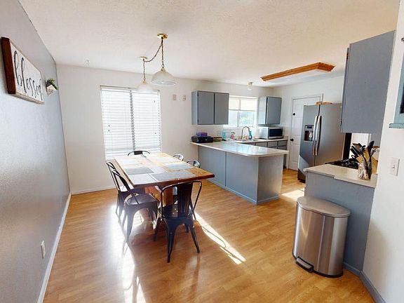 Walking into this home you are greeted to a sitting room with big windows that let a lot of sunlight in. Behind the sitting room is the kitchen with a dining room for your kitchen table. Down the hall you will find the master bedroom along with two other bedrooms and a laundry room that is upstairs. Downstairs, there is two more bedrooms with a big living room. Plenty of room to host guests. A bonus to this house, is a big walk in workout/storage room.Outside is a fully fenced backyard with a large wood deck. The Nevada sunsets would be beautiful back there.