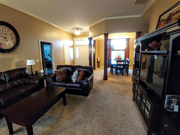 One story living at its best! This former Windsor Model Home is ready for a new owner. All the little extras that add up to making a house a home. The professionally landscaped front yard gives you a taste of what's to come. The foyer opens to the living room and the dining room, which is separated by square posts trimmed in wood while the balance of the woodwork is painted white. The contrast of the pillars adds a little spice to the mix. The 3 sided fireplace may be enjoyed from the kitchen, living room, hearth room or the dining nook. From the nook and hearth room you have a wonderful expansive pond view. Unlike a normal pond lot you have a nice 4 foot picket style fence for corralling what ever you choose. The expansive windows in this area also allows for wonderful natural light to fill these rooms. The kitchen has nice custom cabinetry, tons of counter space, a nice coffee bar area (no the espresso machine does not stay) and a walk-in corner pantry. This split bedroom design offers 2 bedrooms and a bath on one side and an Owners Suite on the other side of the home. The Owners Ensuite is delightful in size BUT the walk-in tile shower will captivate you. Between the dual shower heads and the body spray jets - you'll look forward to some long, relaxing showers. This comfortably elegant home awaits you...